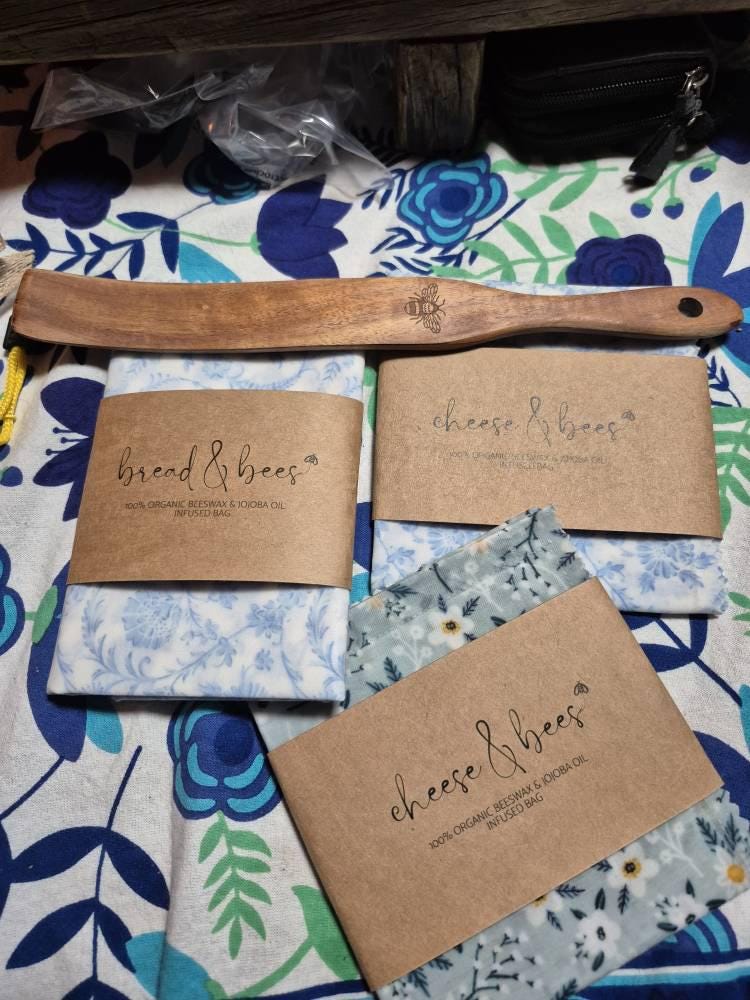 Reusable Beeswax Bread Bag + Cheese Bag + Spurtle | Sustainable Kitchen Gift | Plastic-Free & Handmade | Gift Under 50